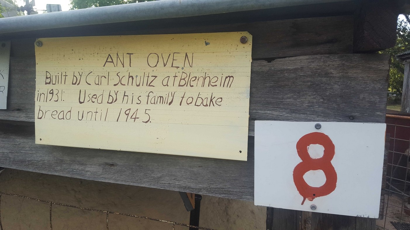 Located where it is likely the original kitchen of the slab hut would have been situated. This oven was originally built at Blenheim in 1931 and made from ant bed nest mud (or termite mound mud) and it was used until 1945 for baking bread. It has been used for baking scones and damper at previous special events at the village but requires to be kept unused now to preserve the oven. It has been recognized by the Qld Museum as being of National Significance and is one of the best preserved examples of its type in Australia.